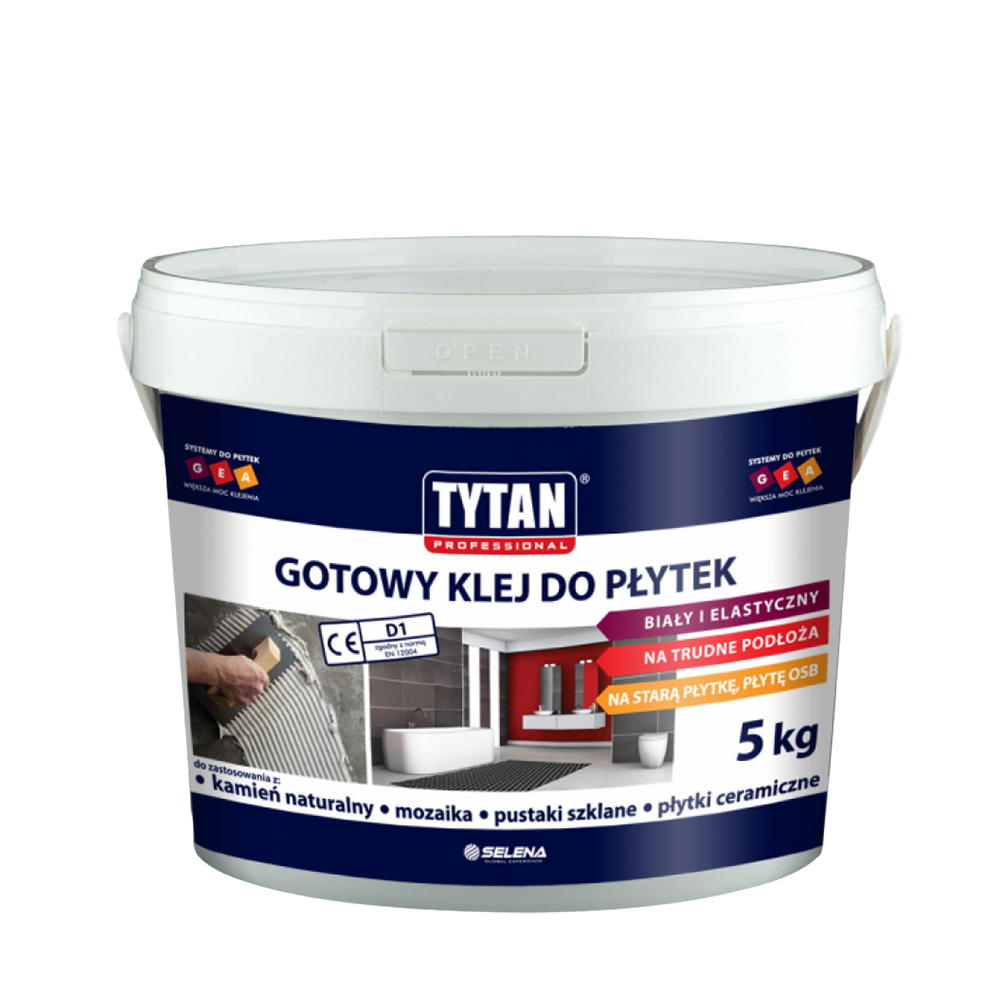 Gotowy do użycia klej dyspersyjny o wysokiej sile klejenia. Przeznaczony do klejenia płytek ściennych i podłogowych, okładzin z kamienia naturalnego, tworzywa sztucznego, mozaiki szklanej, elementów betonowych oraz pustaków szklanych wewnątrz i na zewnątrz pomieszczeń.
