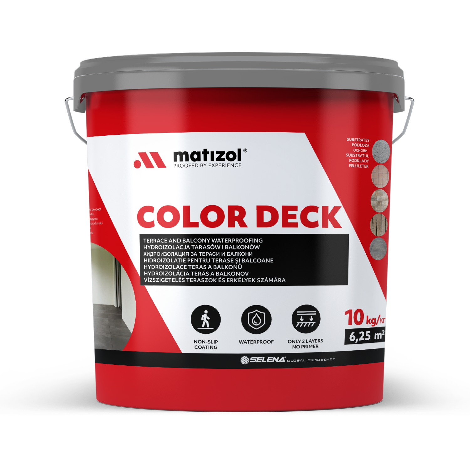 Ta wszechstronna powłoka została zaprojektowana z myślą o łatwości aplikacji i trwałym efekcie. Bez konieczności gruntowania, wystarczą zaledwie dwie warstwy i podstawowe narzędzia malarskie, takie jak wałek czy pędzel. Produkt przeznaczony jest do ochrony i wykończenia nowo budowanych tarasów i balkonów, ale również do rewitalizacji istniejącego wykończenia, niezależnie od tego, czy są to płyty betonowe, gres, papa czy płytki ceramiczne. Matizol Color Deck dostępny jest w czterech kolorach – szarym, białym, czerwonym i zielonym.