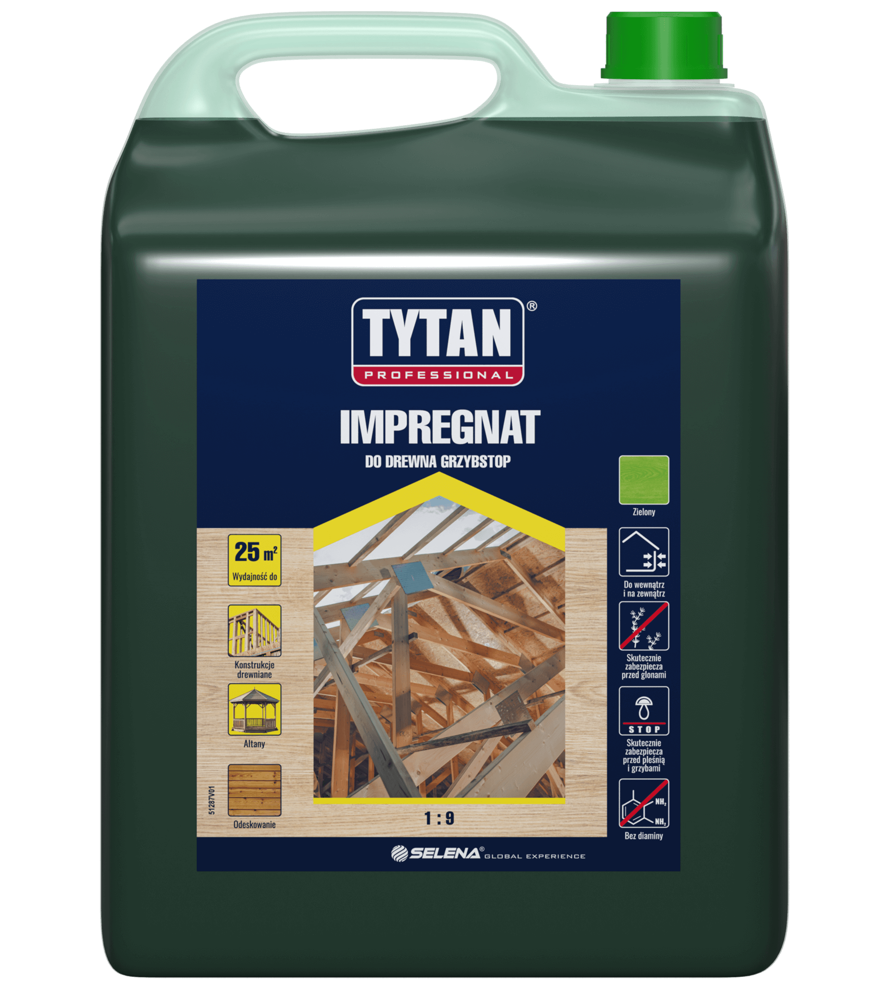 Produkt przeznaczony do zabezpieczania powierzchni drewnianych przed działaniem grzybów domowych i pleśni oraz murów przed działaniem grzybów domowych, pleśni i glonów. Do użytku powszechnego oraz profesjonalnego. Można stosować w pomieszczeniach o podwyższonej wilgotności i ograniczonej wentylacji. niszczącego działania UV. Produkt przeznaczony jest do powierzchniowej oraz ciśnieniowej impregnacji drewna użytkowanego wewnątrz i na zewnątrz pomieszczeń, w klasie użytkowania 2 i 3.
