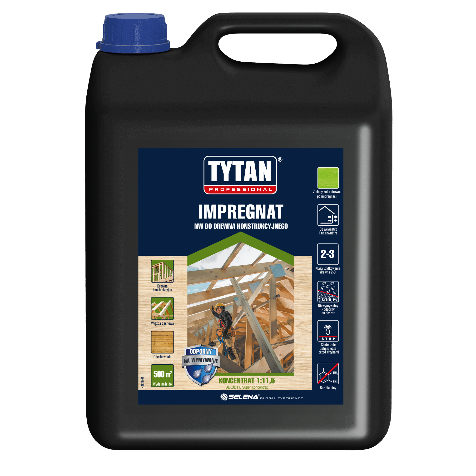 Impregnat do zabezpieczania drewna konstrukcyjnego, budowlanego i ogrodowego przed działaniem grzybów podstawczaków, powodujących głęboki rozkład drewna. Oprócz właściwości biobójczych, impregnat trwale barwi drewno oraz chroni je przed wpływem niszczącego działania UV. Produkt przeznaczony jest do powierzchniowej oraz ciśnieniowej impregnacji drewna użytkowanego wewnątrz i na zewnątrz pomieszczeń, w klasie użytkowania 2 i 3.